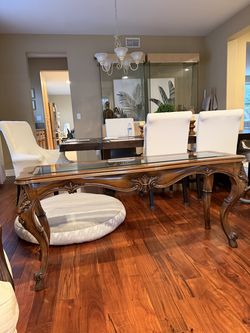 Vintage Glass-Top Coffee Table – Carved Wood Base$60Rodeo, CA