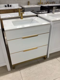 30” bathroom vanity cabinet new solid wood fully assembled Softclose drawers Quartz top sink attached brushed gold handles ready for pick up today$995Miami, FL