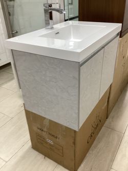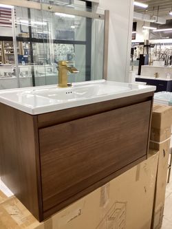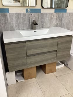 48” Wallmounted vanity new wood color with white color sink integrated ready for pick up today$699Miami, FL