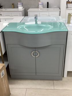 36” bathroom vanity cabinet new solid wood fully assembled Softclose doors tempered glass top sink integrated ready for pick up today$449Miami, FL