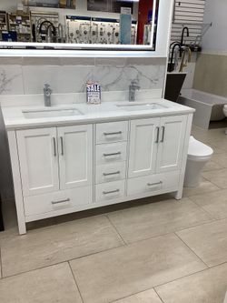 60” bathroom vanity cabinet new solid wood fully assembled Softclose drawers doors Quartz top sink attached ready for pick up today$1,295Miami, FL