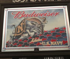 Budweiser Salutes the U.S. Navy mirror/sign. (Trade ?) Absolutely beautiful mirror with an illustration of a ram. It measures 28" X 20." It has never$150Hollywood, FL