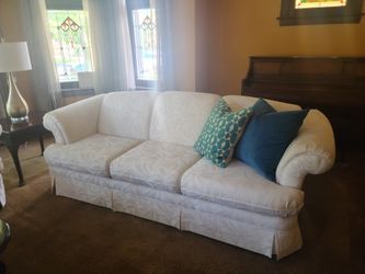 Two Traditional Rolled Arm White Fabric Sofas $250Stickney, IL