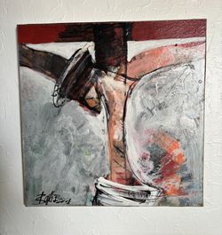 18” x 17” oil on board featuring crucified Jesus. Signed and dated, $280Miami, FL