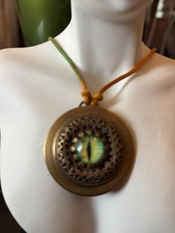 Glass Eye Over Brass Antique Items Hand Crafted By American Glass Artist G. Fone with an adjustable colorful cloth string. 2”x 1.5”$35Miami, FL