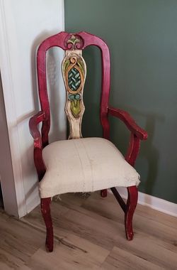 Vintage Red Chinoiserie Carved Georgian Accent Armchair $90Louisburg, NC
