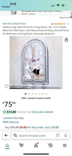 Autdot Large Arched Mirror For Wall Decor Living Room, Crystal Wall Mirror With Glass Diamond Strip, Decorative Mirror For Elegant Dining Room, Entran$60Mesa, AZ