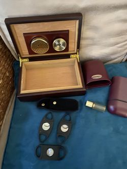 Wood Cigar Box, solid. cigar box size humidor with accessories$25Riverside, CA