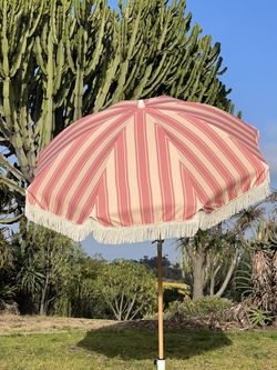 Pink Stripe Vintage Tassel Fringe Beach And Patio Umbrella - Perfect For Picnic$250San Diego, CA