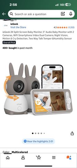 IeGeek 2k split screen baby monitor 5 audio baby monitor with 2 cámaras new$90South Gate, CA