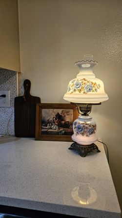 Vintage Blue Flower Floral Hurricane Lamp 3 Way Light
