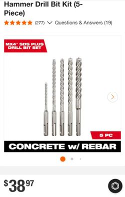 4-Cutter SDS-PLUS Carbide Hammer Drill Bit Kit (5-Piece)$20Santa Clara, CA