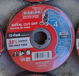 Diablo 4-1/2 in. x 0.040 in. x 7/8 in. Thin Kerf Metal Cut-Off Disc (15-Pack)$20San Jose, CA