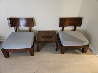 SET OF 2 INDONESIAN HANDMADE TEAK CHAIRS AND ZEN TABLE. (APPROX. WEIGHT 200LBS TOTAL$200Port St. Lucie, FL