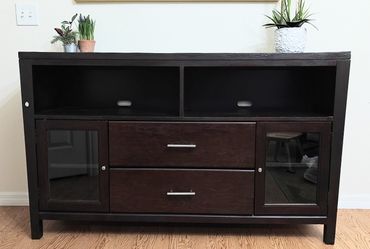 Dark Mahogany Espresso Modern Long Rectangular Media Big Screen TV Stand Glass Shelves Drawers Storage$175Las Vegas, NV