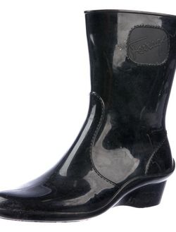 Salvatore Ferragamo Mid-Calf Rain Boots Black Round-Toes Wedge Heels$95Brooklyn, NY