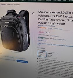 Samsonite Xenon 3.0 Slim Laptop Backpack $60Riverside, CA