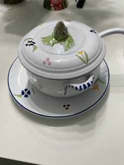CANTAGALLI ITALY FIRENZE COVERED TUREEN UNDER PLATE & LADLE FLOWERS BLUE TRIM$150Santa Ana, CA