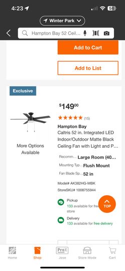 Hampton Bay Caltris 52 in. Integrated LED Indoor/Outdoor Matte Black Ceiling Fan with Light and Pull Chains Included$75Apopka, FL