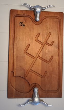 VINTAGE BRUCE FOX LONGHORN STEER WOOD CUTTING BOARD TRAY