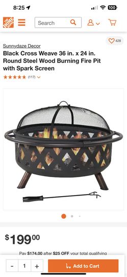 Home Depot Brand New $200 In The Store New Black Cross Weave 36 in. x 24 in. Round Steel Wood Burning Fire Pit with Spark Screen$55Corona, CA