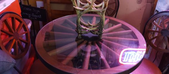 Western Wagon Wheel Bar Table And 3 Stool $350Houston, TX