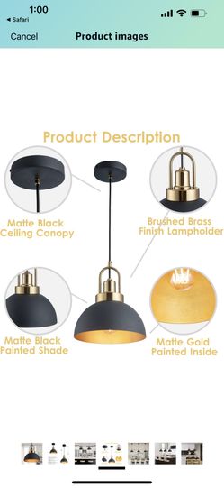Vintage Pendant Light 9.25” Black and Gold Chandelier Lighting Brass Socket Dome line Length 59.5”$15Artesia, CA
