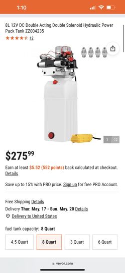 8L 12V DC Double Acting Double Solenoid Hydraulic Power Pack Tank$45Artesia, CA