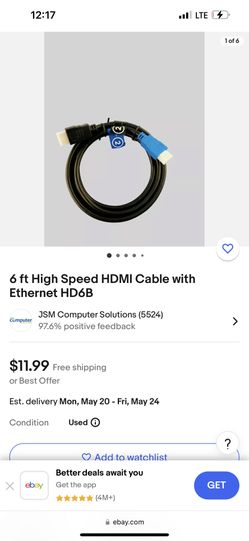6 ft High Speed HDMI Cable with Ethernet HD6B$2Artesia, CA