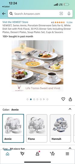 VEWEET, Series Annie, Porcelain Dinnerware Sets for 6, White Dish Set with Pink Floral, 30 PCS Dinner Sets Including Dinner Plates, Dessert Plates, So$40Bellflower, CA