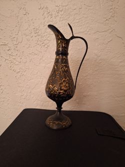 VINTAGE & BEAUTIFUL Etched Brass Indian Ewer Pitcher Bud Vases Black & Gold$25Tamarac, FL