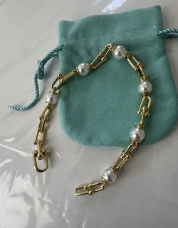 Freshwater Pearl Gold Chain Bracelet with toggle clasp, 925.$75Santa Clarita, CA