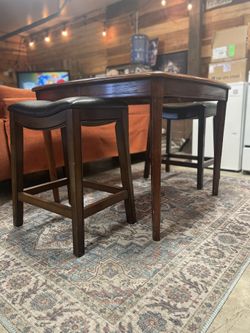 3.5 x 3.5ft Wooden Table w/2 Black Leather Stools $125Vista, CA