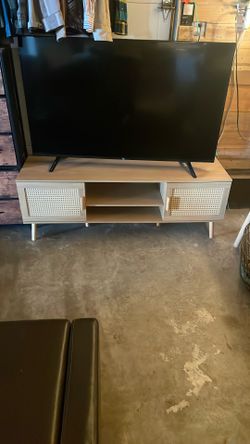 SUPERJARE Boho TV Stand for 65 Inch TV, Entertainment Center with Adjustable Shelf, Rattan TV Console with 2 Cabinets, Media Console, Solid Wood Feet,$150Vista, CA