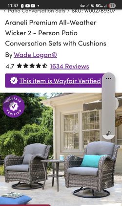 Araneli Premium All Weather Wicker 2 Person Patio Set$250Moreno Valley, CA
