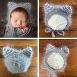 Angora Kitty Bonnet, Newborn Hat, Newborn Photo Prop, Knit Baby Hat Grey Gray$28Fort Lauderdale, FL