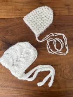 Set Of Two White Knitted Bonnets For Newborn Baby Photo Session$20Fort Lauderdale, FL