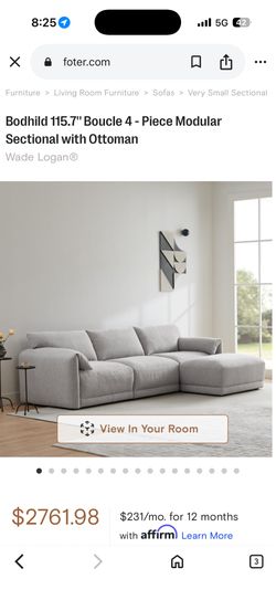 Wade Logan Bodhild Boucle 4 - Piece Modular Sectional Sofa with Ottoman$1,800San Diego, CA