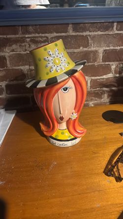 Ceramic Daisy Hat Lady Wearing Hat with White Daisy Design Hat "Diet Cookies" Cookie Jar, 10-7/8" H$25Renton, WA