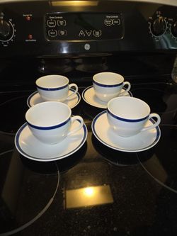 Williams-Sonoma Brasserie Collection Vintage Set Of Four Cups And Saucers Blue Rim$50Mesa, AZ