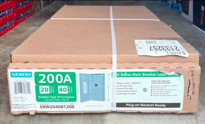 Siemens SN 200 -Amp 20 -Spaces 40 -Circuit Outdoor Main Breaker Plug-On Neutral Load Center$180Houston, TX