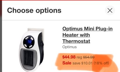 Optimus mini plug-in heater with thermostat$25Montclair, CA