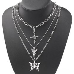 Gothic Punk Multilayer Angel Cross Rose Butterfly Pendant Chain Necklaces$22Oakland Park, FL