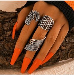 3Pcs/Set Bohemian Gothic Ancient Silver Metal Knuckle Tree Leaf Midi Rings$22Oakland Park, FL