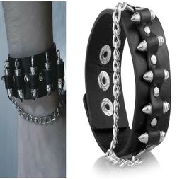 Gothic Punk Metal Chain Bullet Shape Spike Rivet Wide Cuff Leather Bracelet