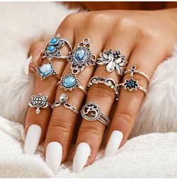 11Pcs/Set Bohemian Ethnic Tribal Antique Silver Blue Gemstone Midi Rings$20Oakland Park, FL