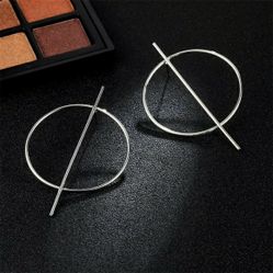 Boho Sleek Punk Retro Classy Silver Geometric Big Circle Stick Bar Hoop Earrings$12Fort Lauderdale, FL