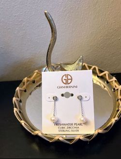 Giani Bernini Freshwater Pearl (7-8mm) & Cubic Zirconia Drop Earrings in Sterling Silver (Pick up🛒 In Bellevue) *Check out my Other Posts 🎁$45Bellevue, WA