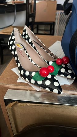 Betsy Johnson, black and white polkadot shoes with cherries on top$50Rialto, CA