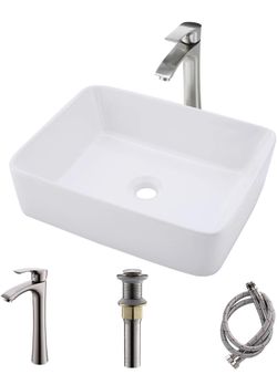 New White Vessel Sink with Faucet and Drain Combo-Bokaiya 19x15 Rectangle Vessel Bathroom Sink Above Counter White Top Mount Porcelain Ceramic Bathroo$100Sacramento, CA